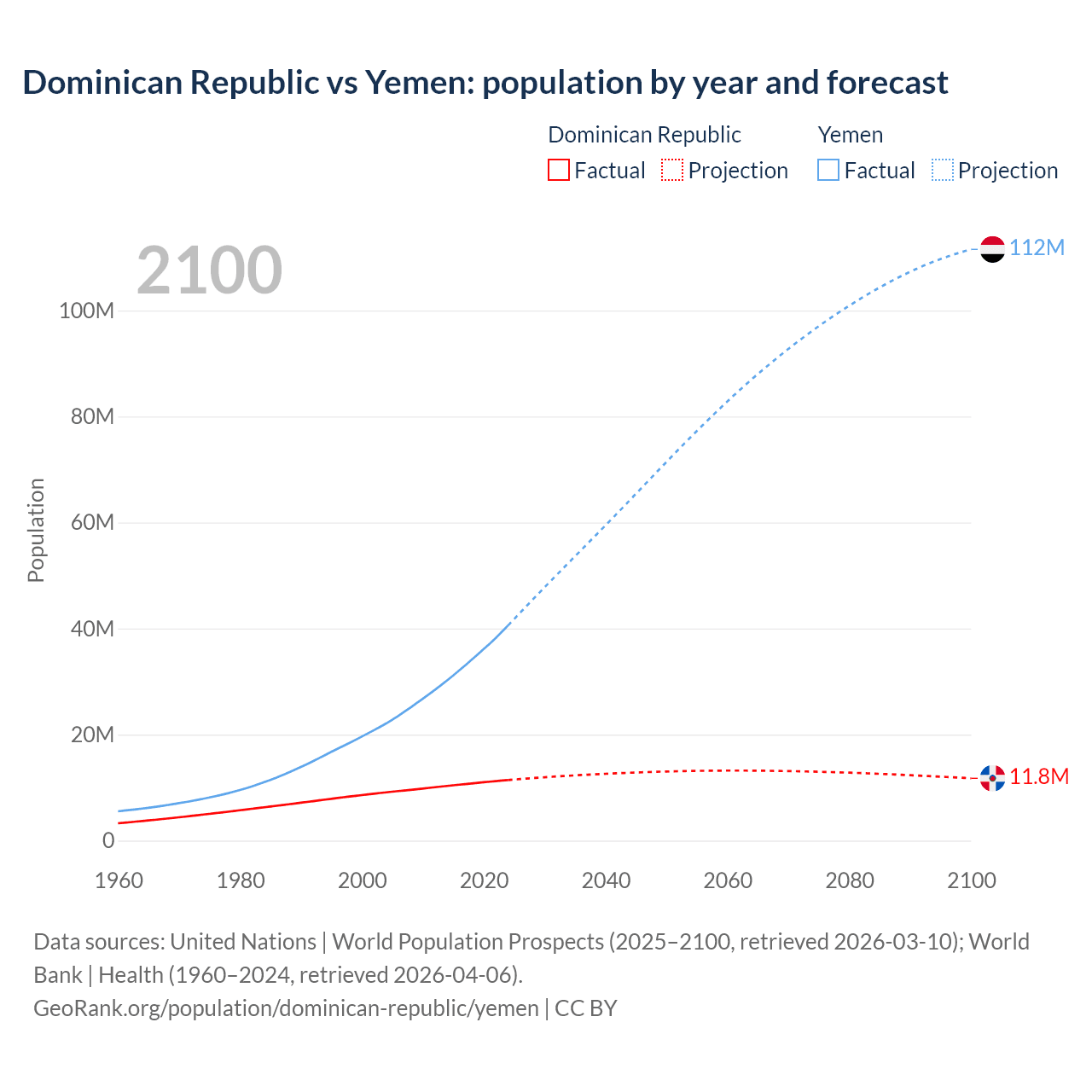 Dominican Republic vs Yemen: population by year and forecast