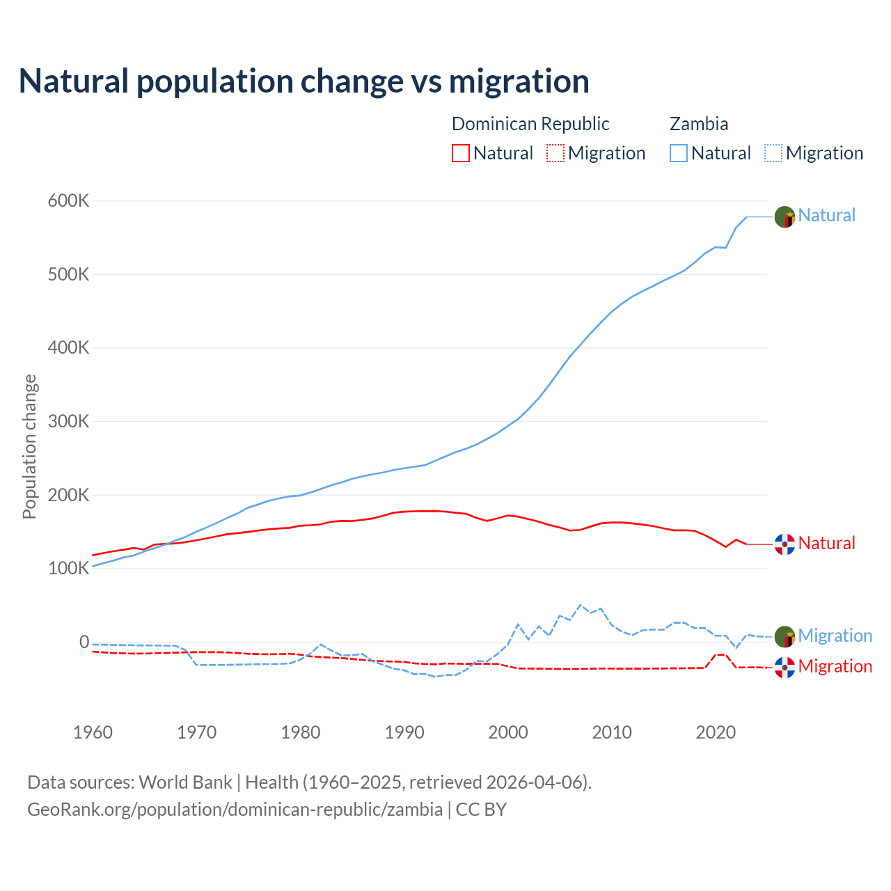 Population differences between the Dominican Republic and Zambia