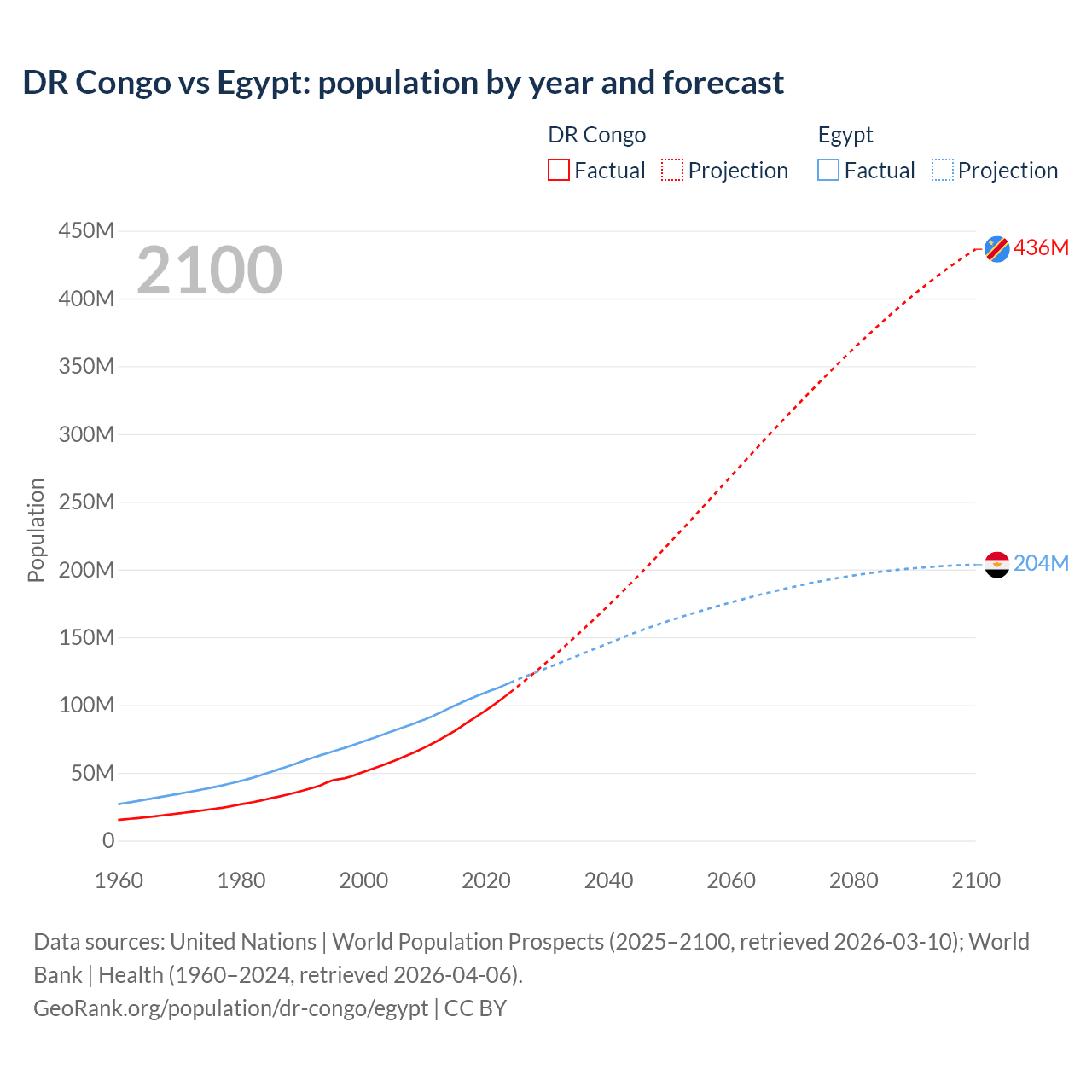 DR Congo vs Egypt: population by year and forecast