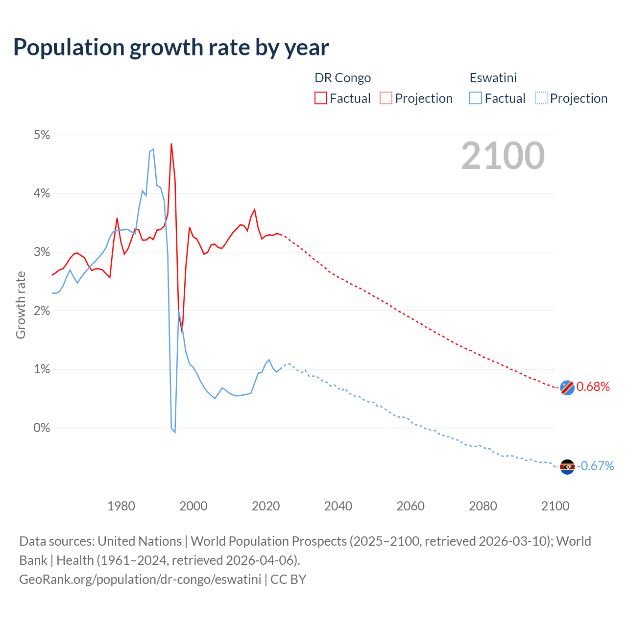 DR Congo vs Eswatini: population by year and forecast