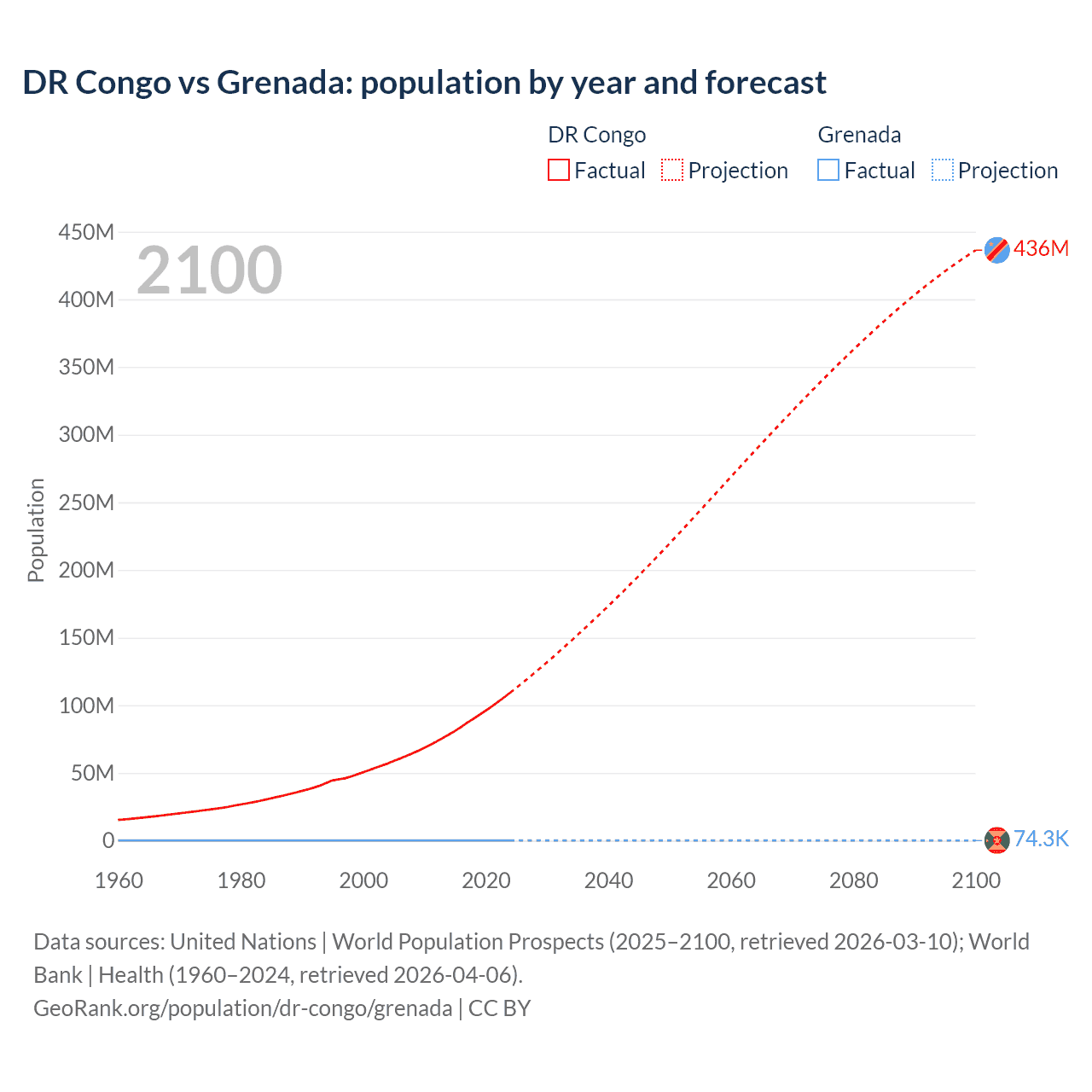 - The DR Congo's population is 1,001 times bigger than Grenada's.
