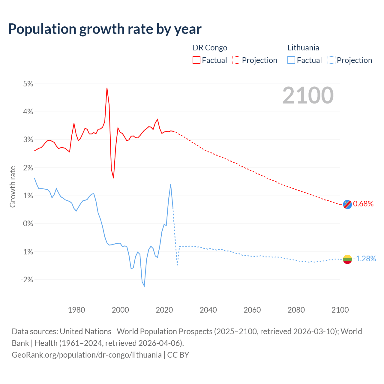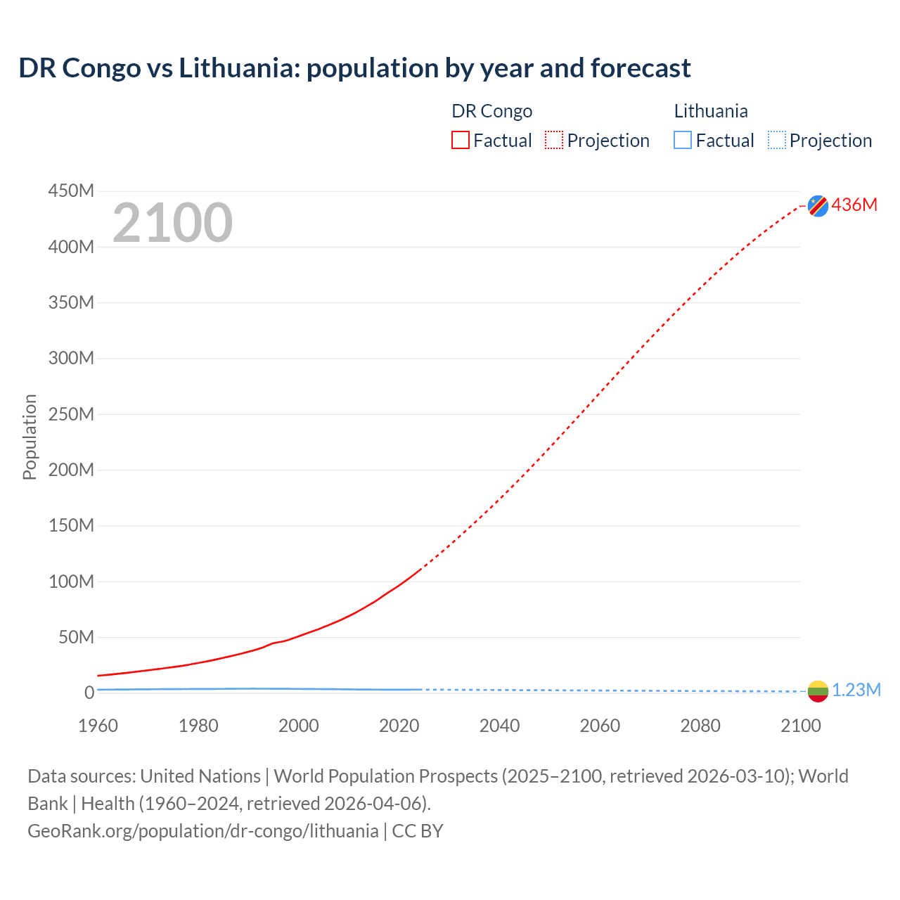 DR Congo vs Lithuania: population by year and forecast
