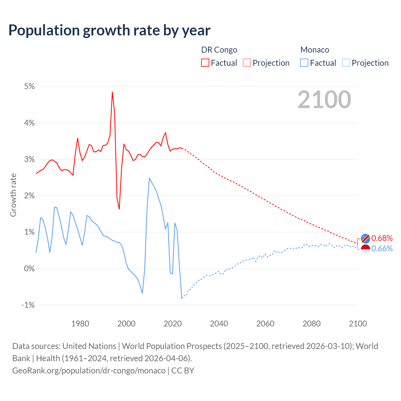 DR Congo vs Monaco: population by year and forecast