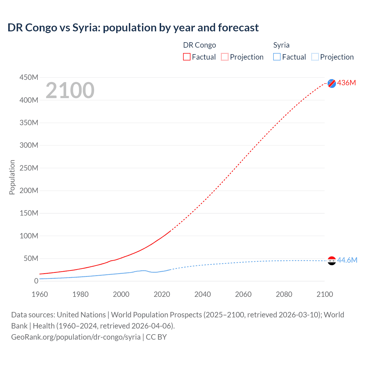 DR Congo vs Syria: population by year and forecast