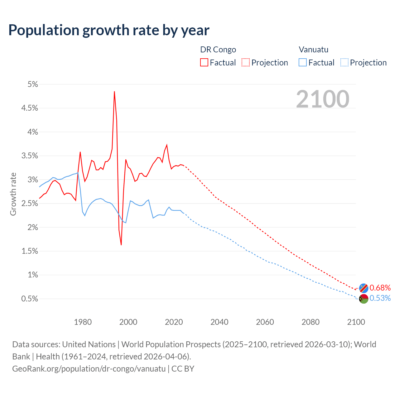 DR Congo vs Vanuatu: population by year and forecast