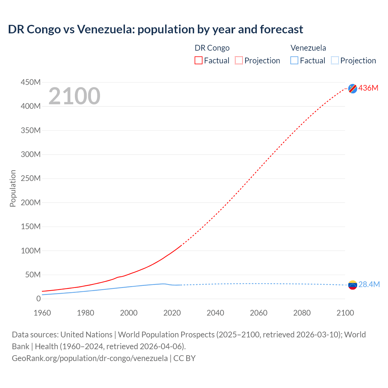 DR Congo vs Venezuela: population by year and forecast