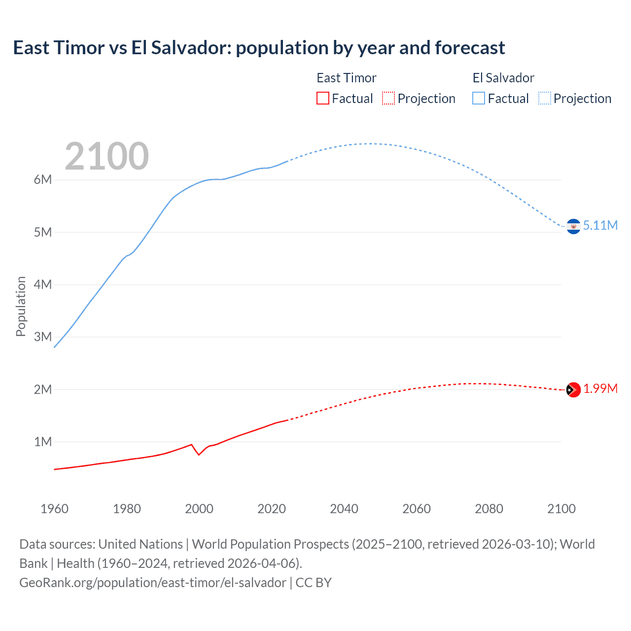 East Timor vs El Salvador: population by year and forecast