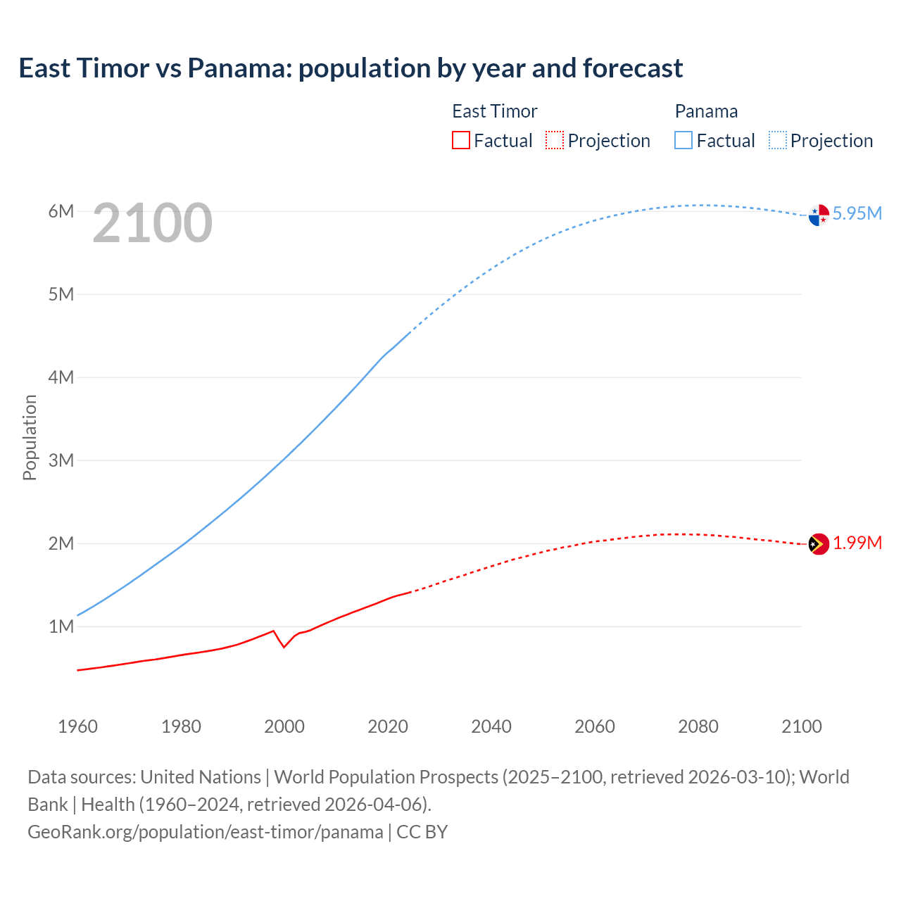 - For the last 10 years, East Timor has had an average growth rate of +1.74% per year vs +1.52% in Panama.