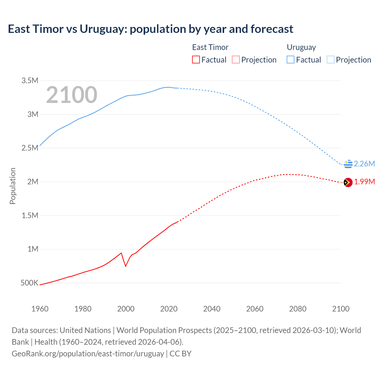 East Timor vs Uruguay: population by year and forecast