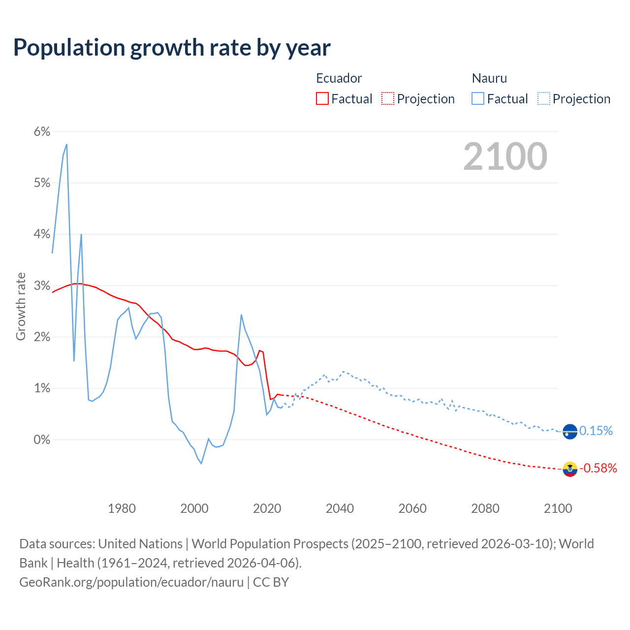 - For the last 10 years, Ecuador has had an average growth rate of +1.26% per year vs +1.17% in Nauru.