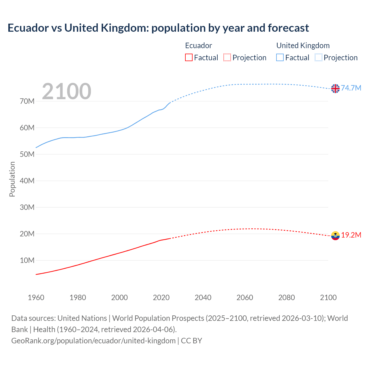 Ecuador vs United Kingdom: population by year and forecast