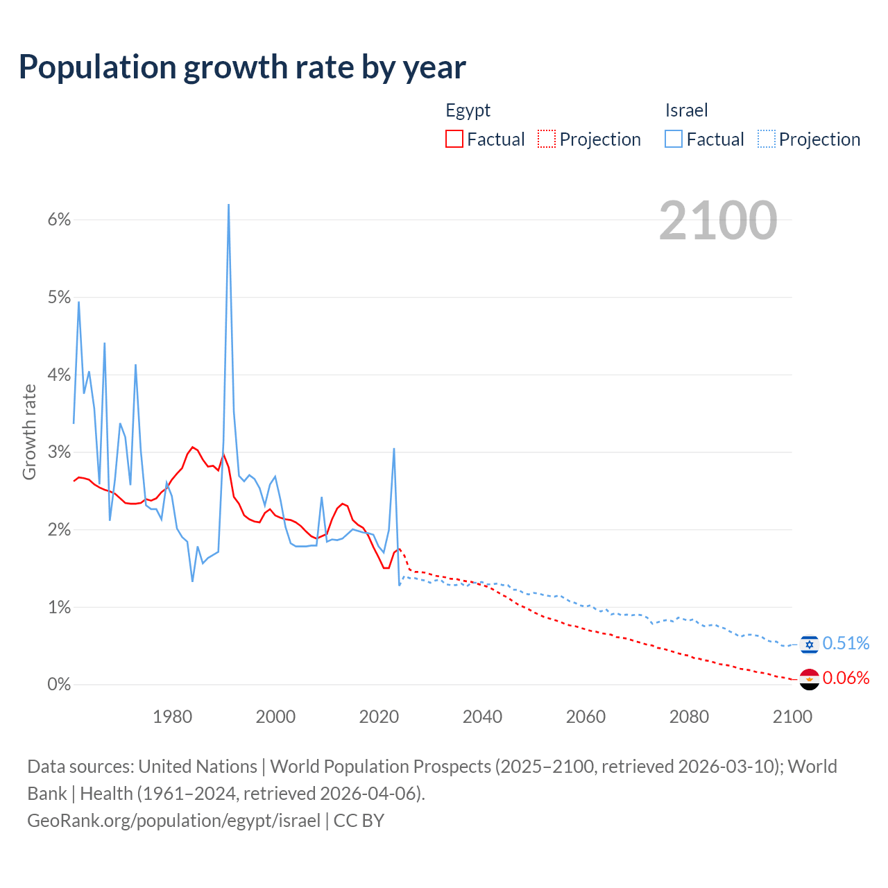Data sources: World Bank | Health (1960–2024, retrieved 2026-04-06); United Nations | World Population Prospects (1960–2026, retrieved 2026-03-10); U.S. Census Bureau (1960–2025, retrieved 2026-02-08); Central Intelligence Agency (CIA) (2000–2019, retrieved 2026-02-20).