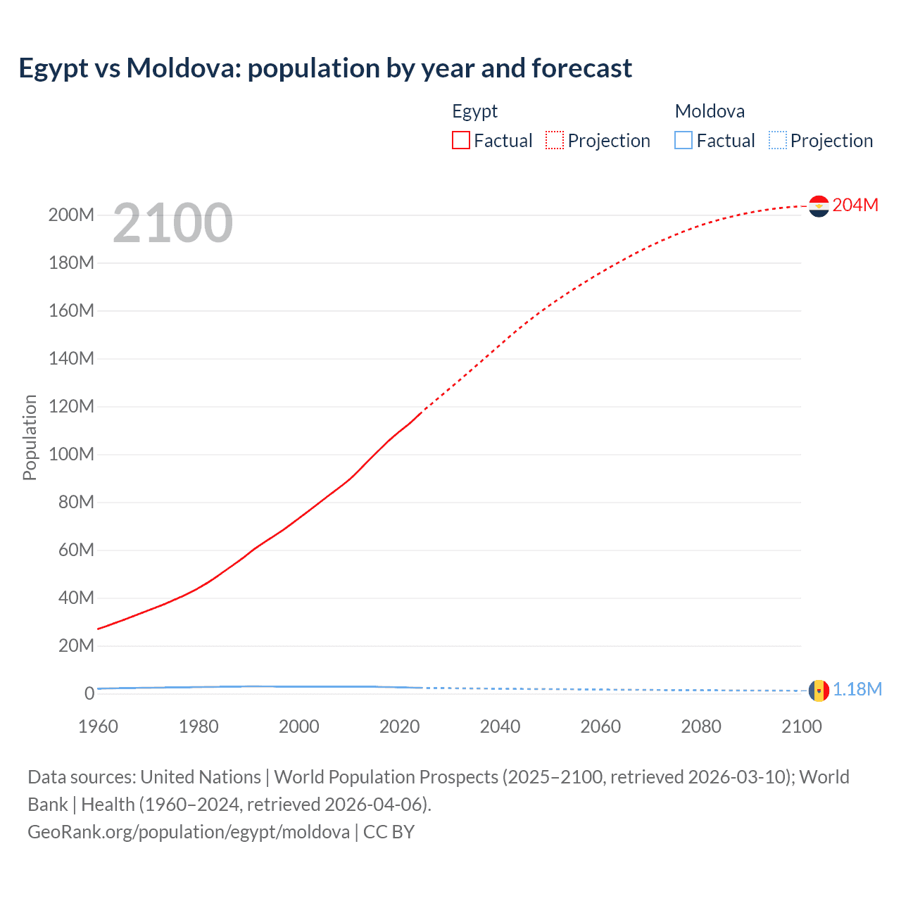 Egypt vs Moldova: population by year and forecast