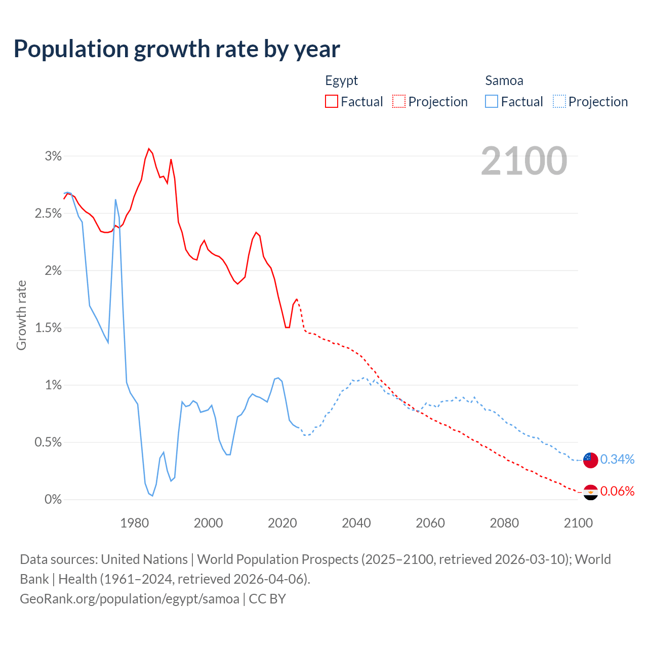 Egypt vs Samoa: population by year and forecast