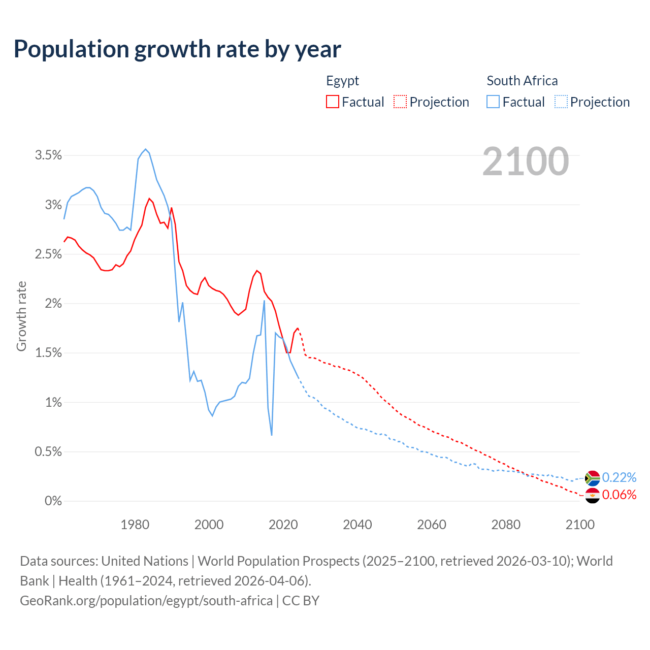 Data sources: World Bank | Health (1960–2024, retrieved 2026-04-06); United Nations | World Population Prospects (1960–2026, retrieved 2026-03-10); U.S. Census Bureau (1960–2025, retrieved 2026-02-08); Central Intelligence Agency (CIA) (2000–2019, retrieved 2026-02-20).