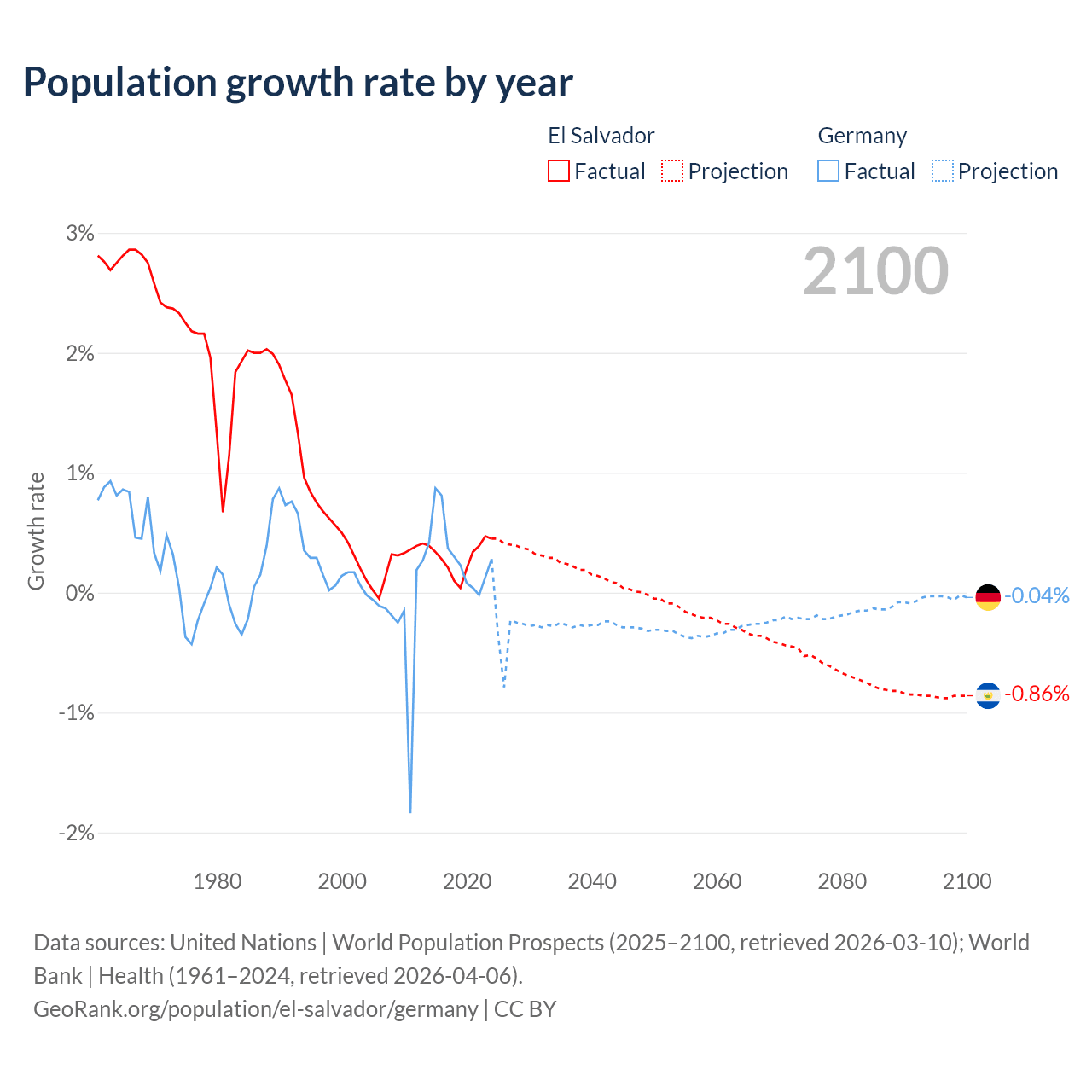 El Salvador vs Germany: population by year and forecast