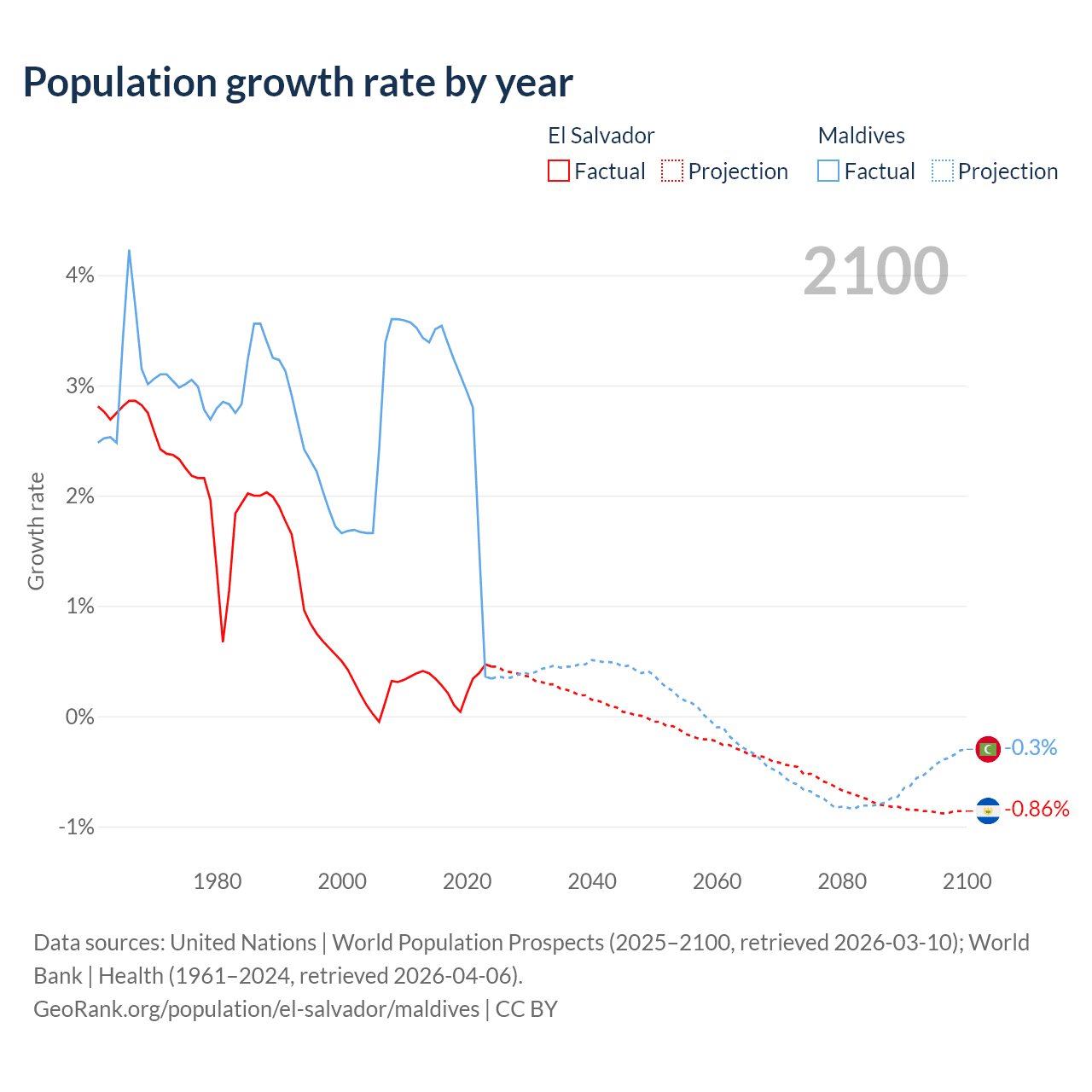 El Salvador vs Maldives: population by year and forecast