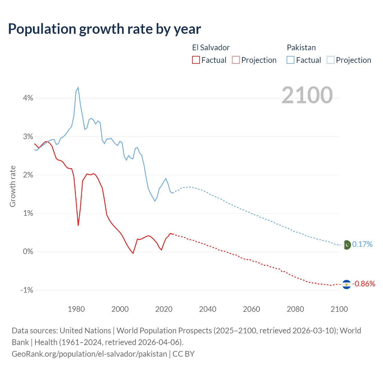El Salvador vs Pakistan: population by year and forecast