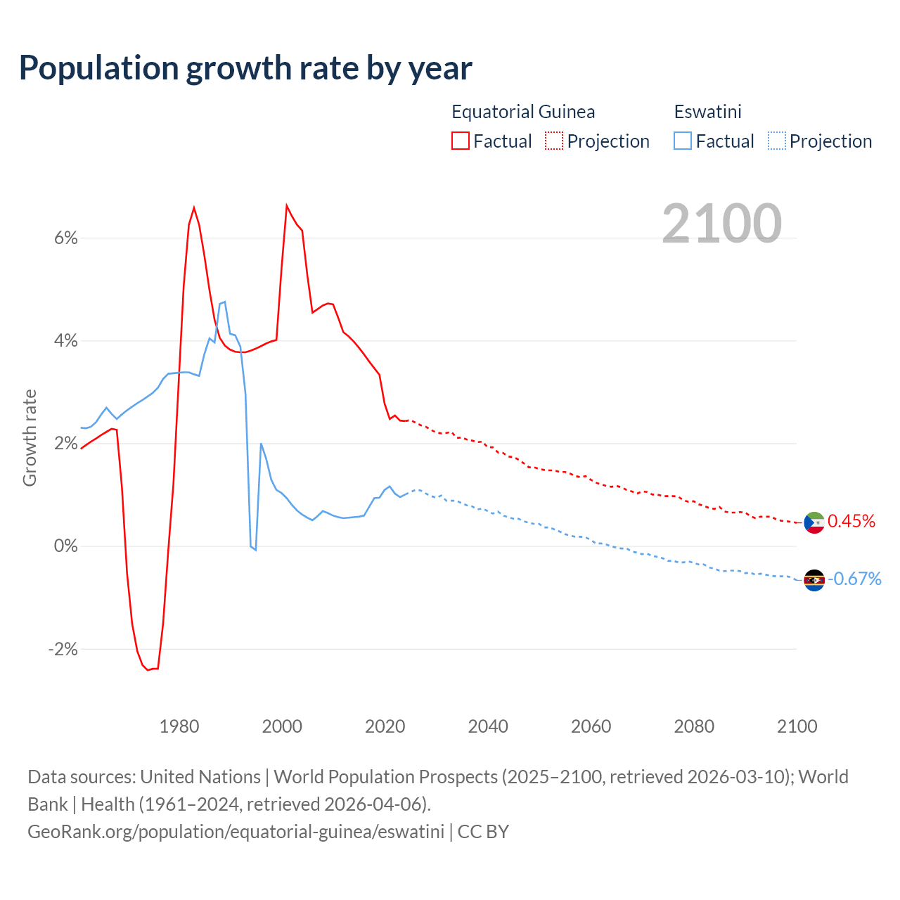 Equatorial Guinea vs Eswatini: population by year and forecast