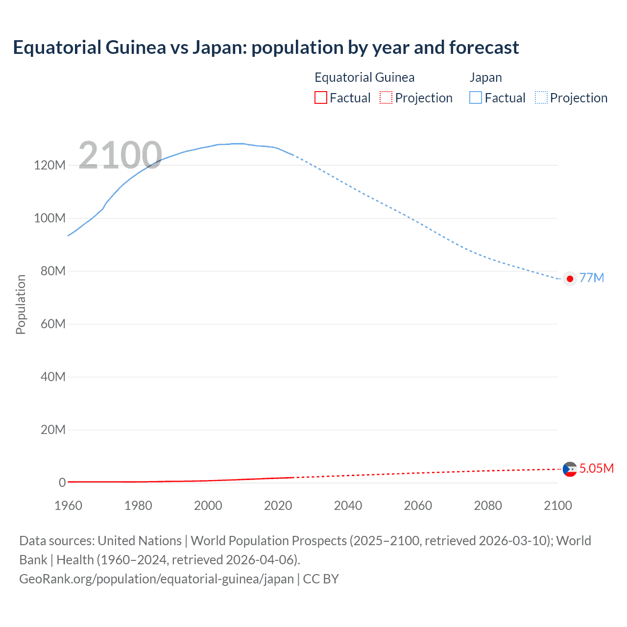 Equatorial Guinea vs Japan: population by year and forecast