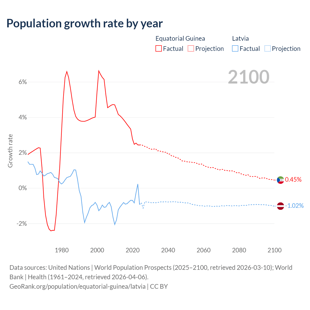 Equatorial Guinea vs Latvia: population by year and forecast