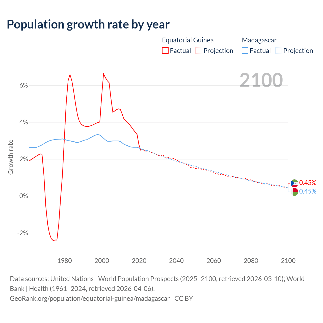 Equatorial Guinea vs Madagascar: population by year and forecast