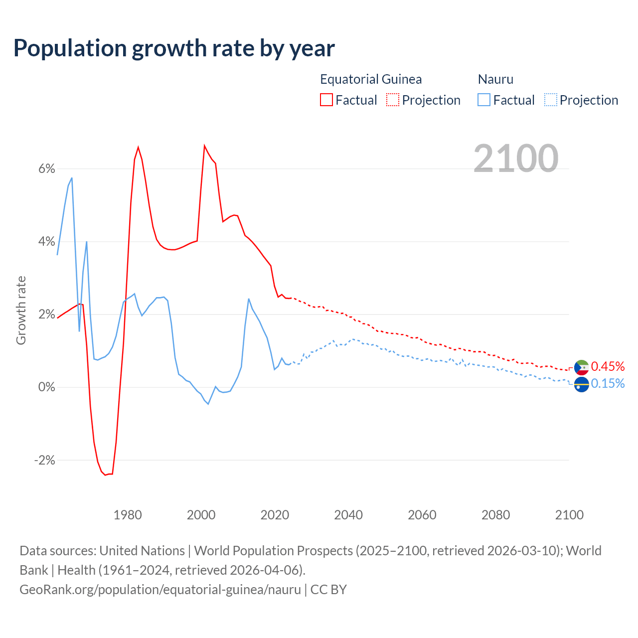 - For the last 10 years, Equatorial Guinea has had an average growth rate of +3.15% per year vs +1.17% in Nauru.