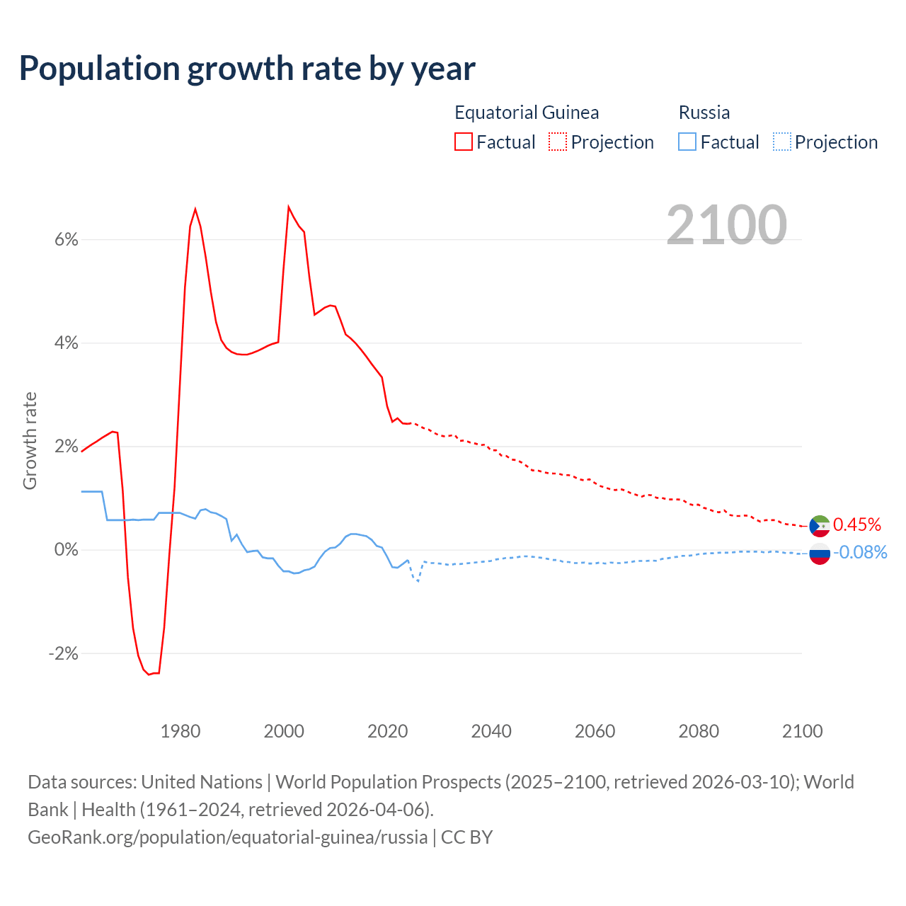 Data sources: World Bank | Health (1960–2024, retrieved 2026-04-06); United Nations | World Population Prospects (1960–2026, retrieved 2026-03-10); U.S. Census Bureau (1960–2025, retrieved 2026-02-08); Central Intelligence Agency (CIA) (2000–2019, retrieved 2026-02-20).