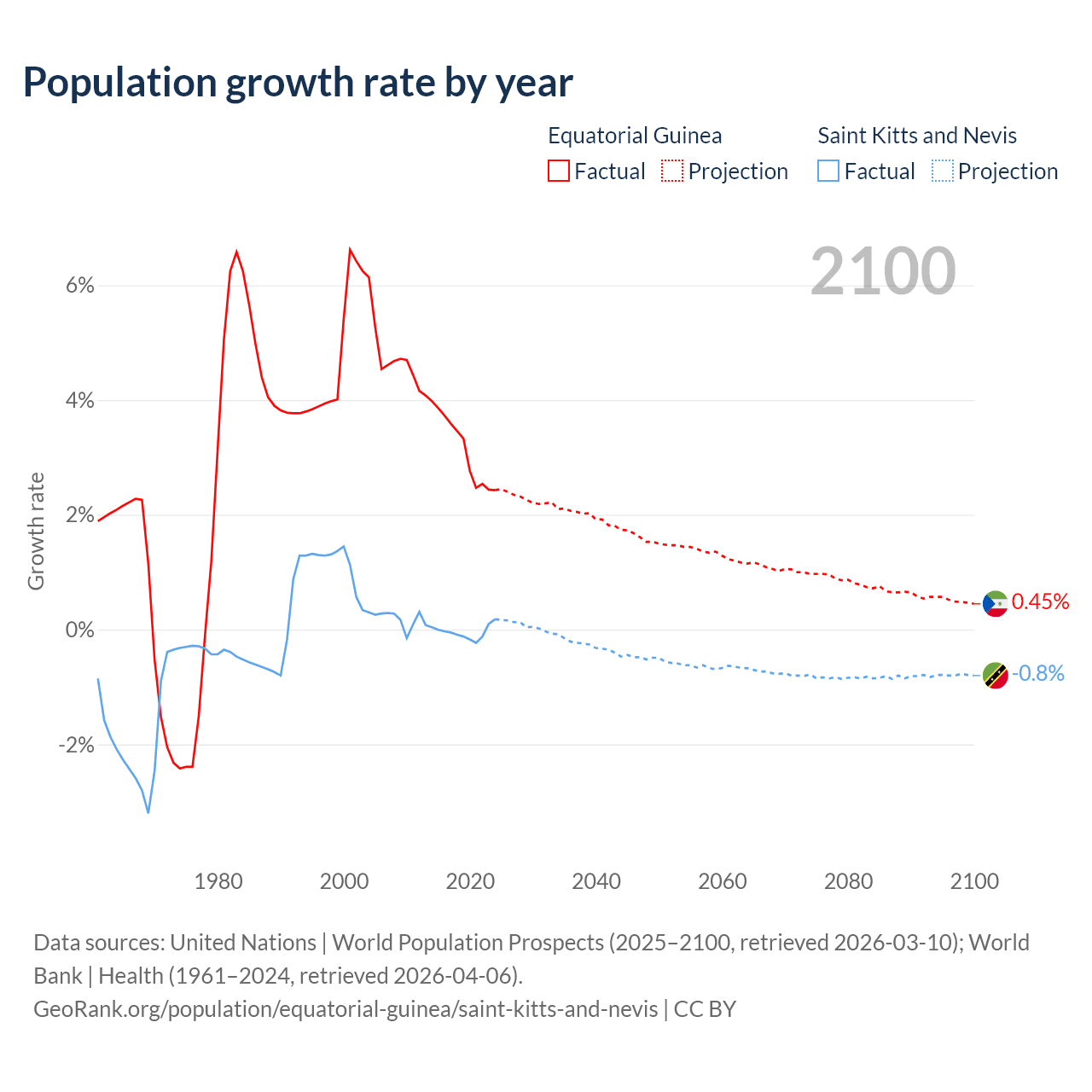 Equatorial Guinea vs Saint Kitts and Nevis: population by year and forecast