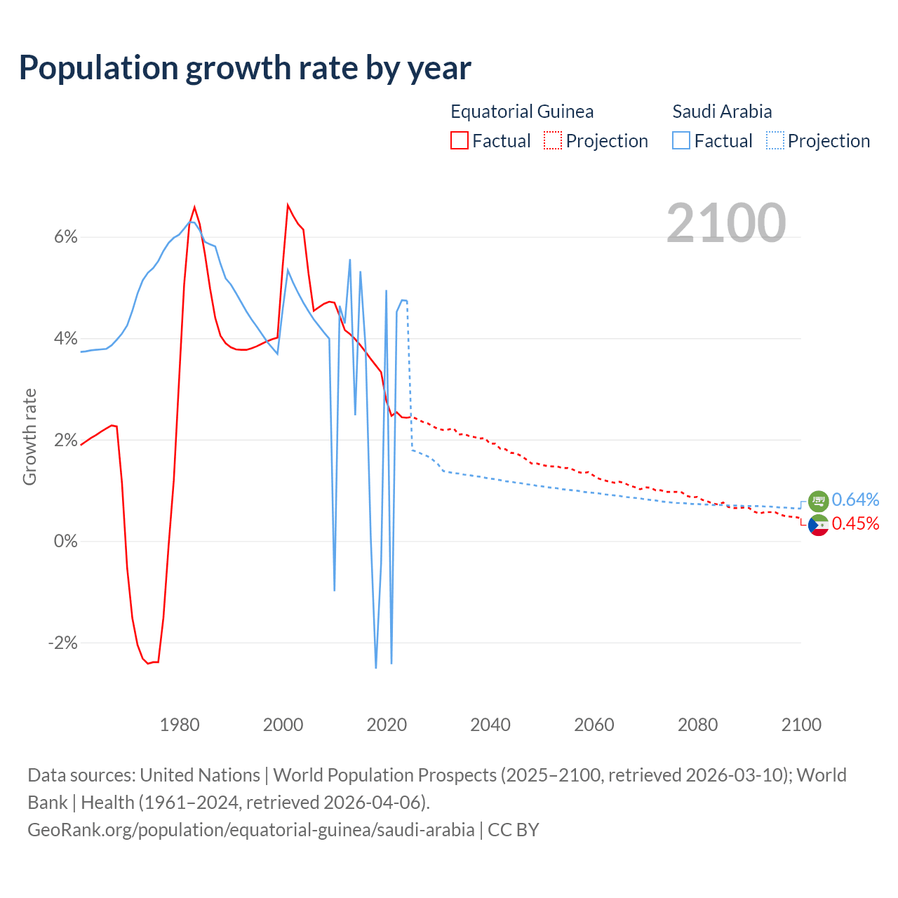 - For the last 10 years, Equatorial Guinea has had an average growth rate of +3.15% per year vs +2.3% in Saudi Arabia.