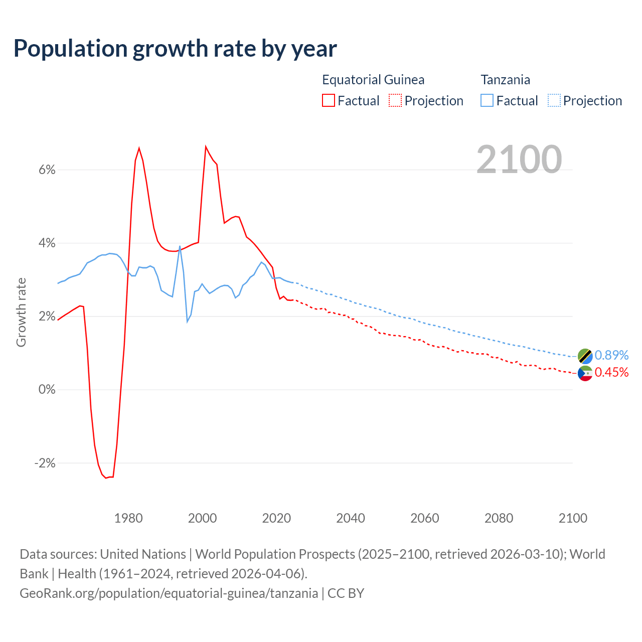- For the last 10 years, Equatorial Guinea has had an average growth rate of +3.15% per year vs +3.13% in Tanzania.