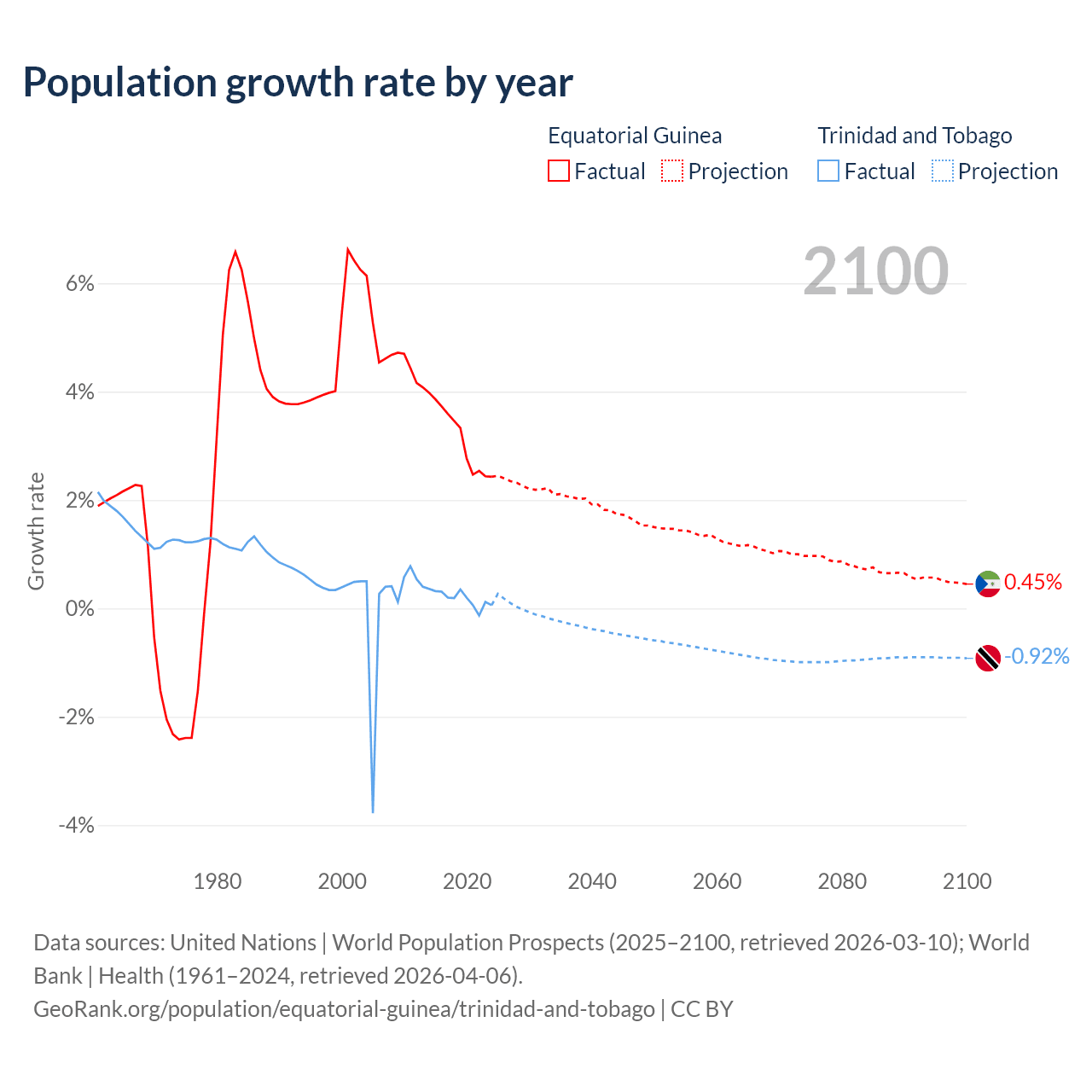 Equatorial Guinea vs Trinidad and Tobago: population by year and forecast
