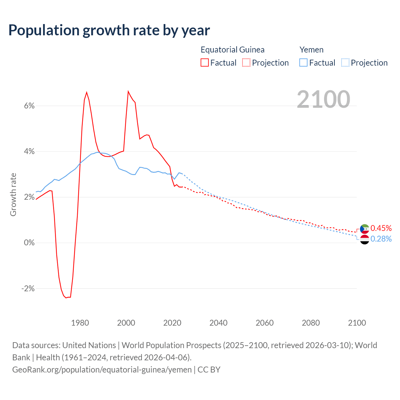Data sources: World Bank | Health (1960–2024, retrieved 2026-04-06); United Nations | World Population Prospects (1960–2026, retrieved 2026-03-10); U.S. Census Bureau (1960–2025, retrieved 2026-02-08); Central Intelligence Agency (CIA) (2000–2019, retrieved 2026-02-20).