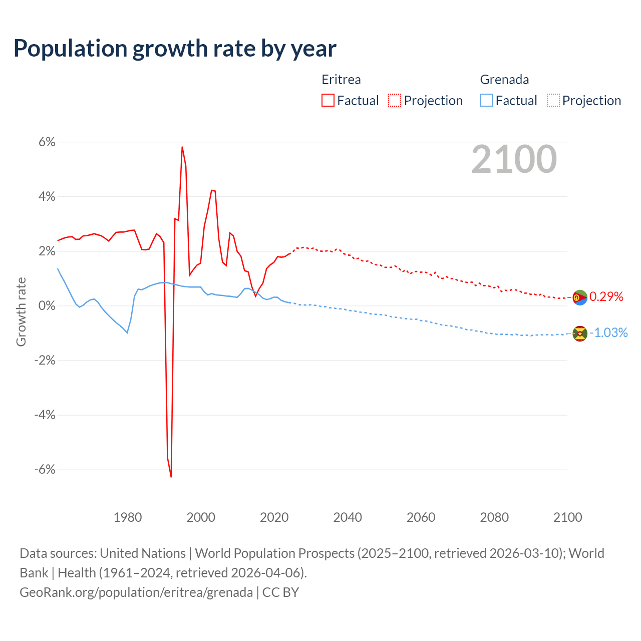 Eritrea vs Grenada: population by year and forecast