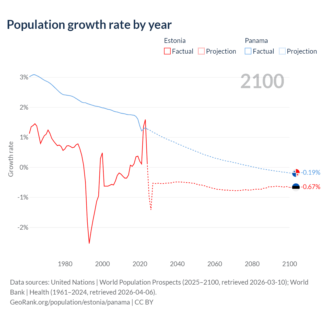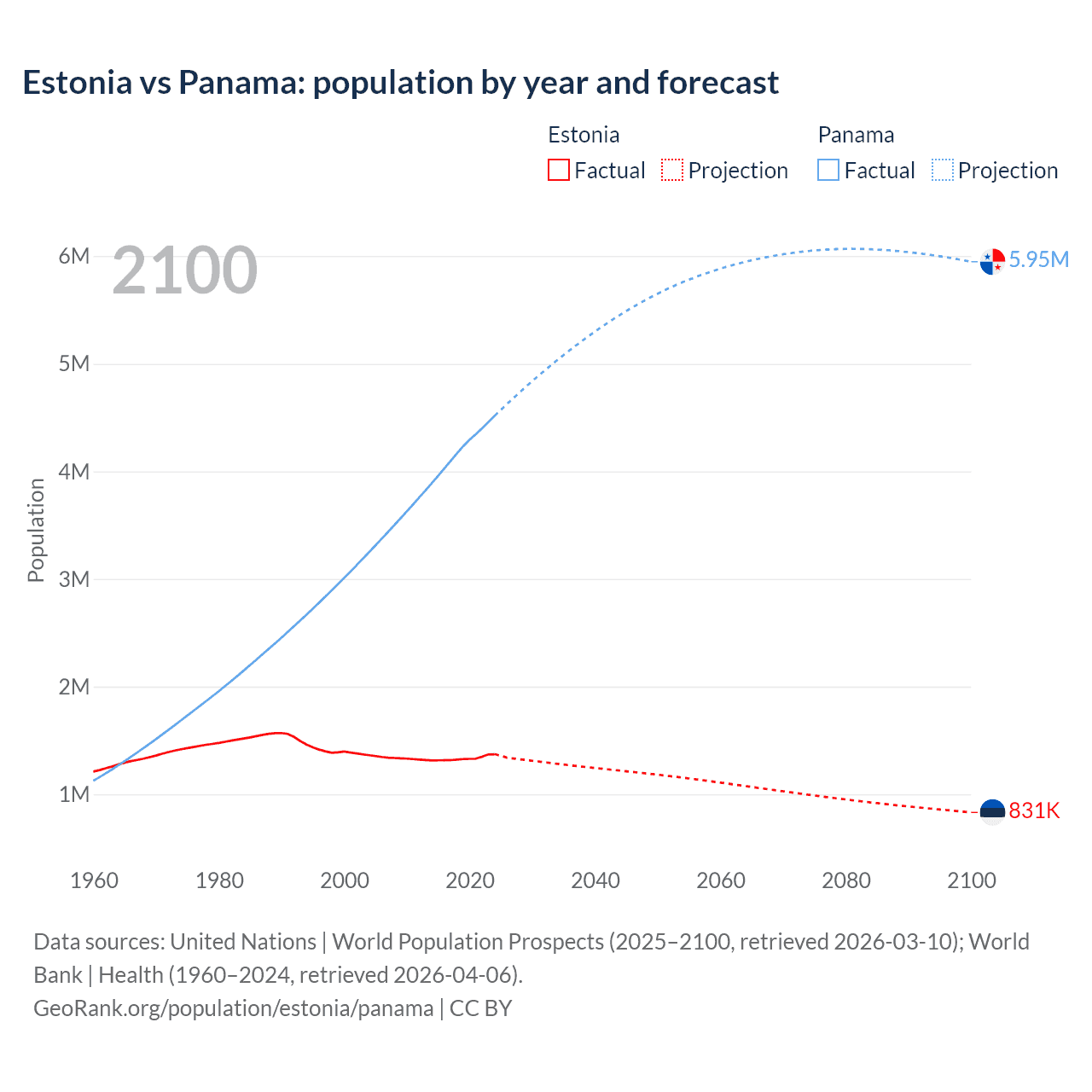 Estonia vs Panama: population by year and forecast