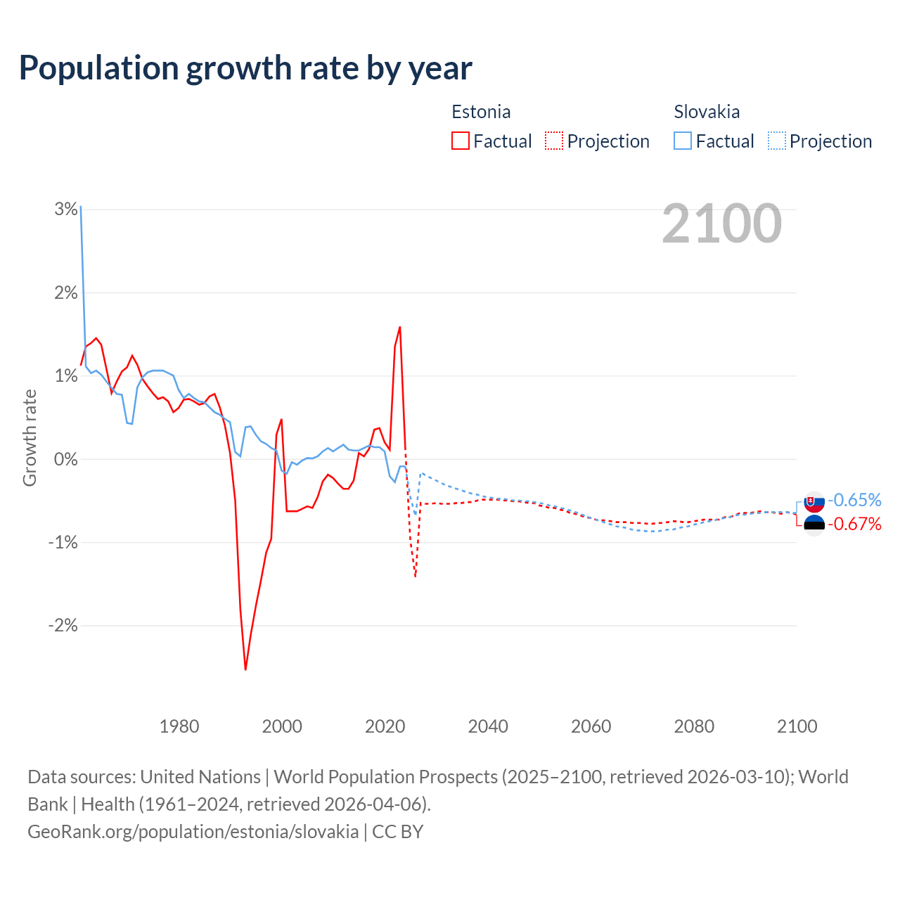 - For the last 10 years, Estonia has had an average growth rate of +0.37% per year vs +0.01% in Slovakia.