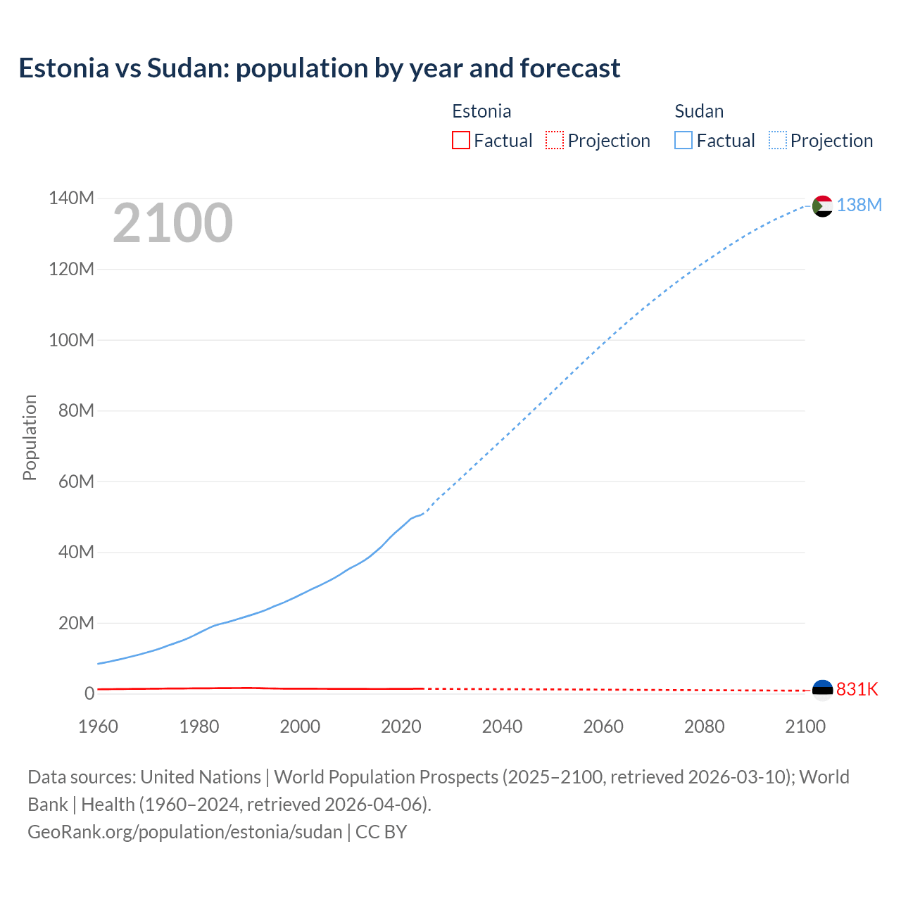 Estonia vs Sudan: population by year and forecast