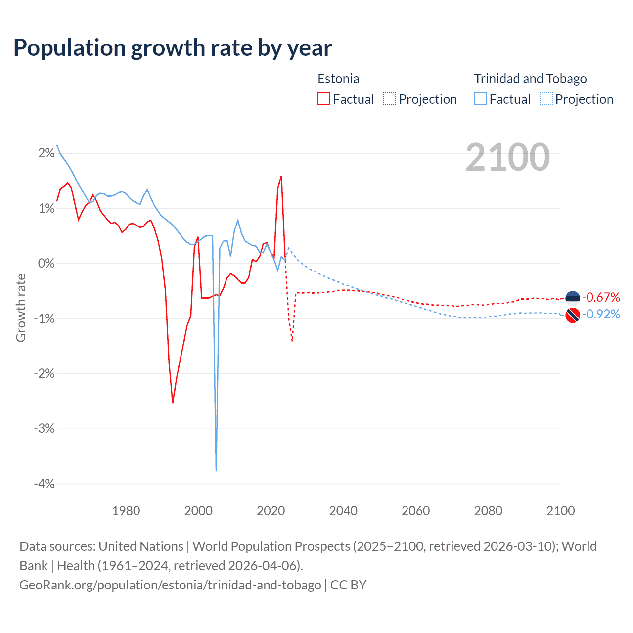 - For the last 10 years, Estonia has had an average growth rate of +0.37% per year vs +0.19% in Trinidad and Tobago.