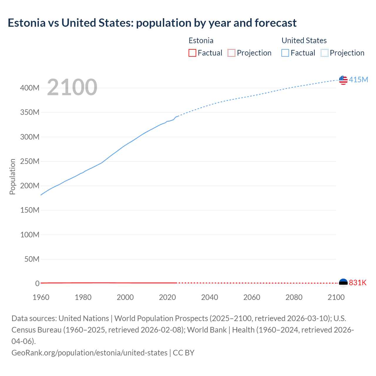 Estonia vs United States: population by year and forecast