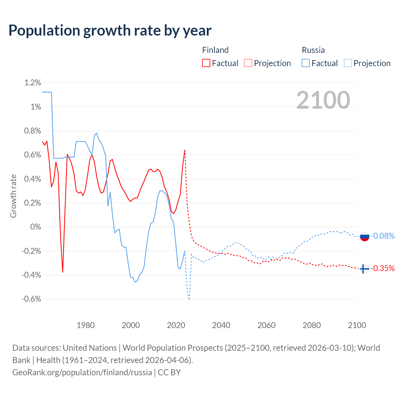 Data sources: World Bank | Health (1960–2024, retrieved 2026-04-06); United Nations | World Population Prospects (1960–2026, retrieved 2026-03-10); U.S. Census Bureau (1960–2025, retrieved 2026-02-08); Central Intelligence Agency (CIA) (2000–2019, retrieved 2026-02-20).