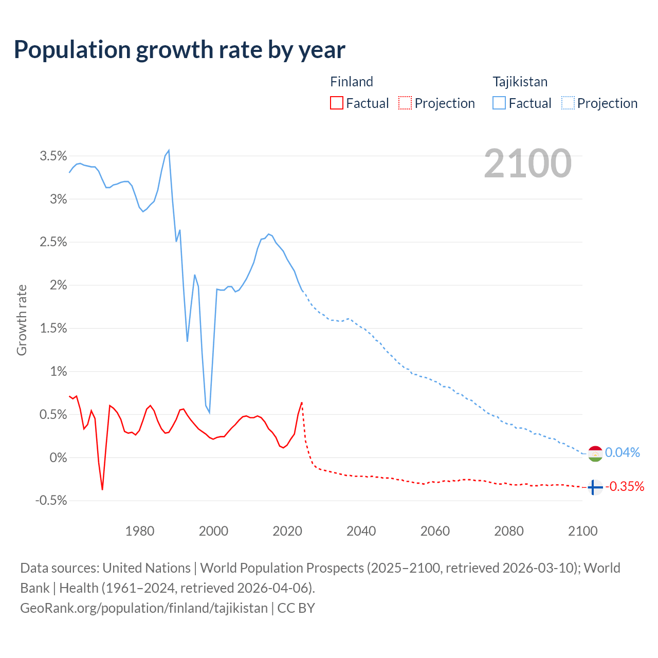 Finland vs Tajikistan: population by year and forecast