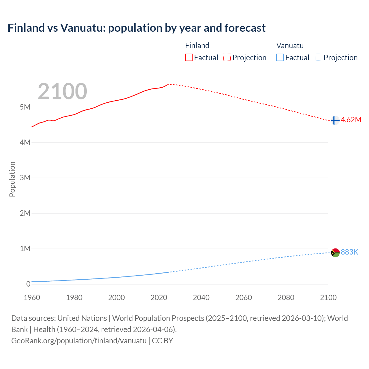 Finland vs Vanuatu: population by year and forecast