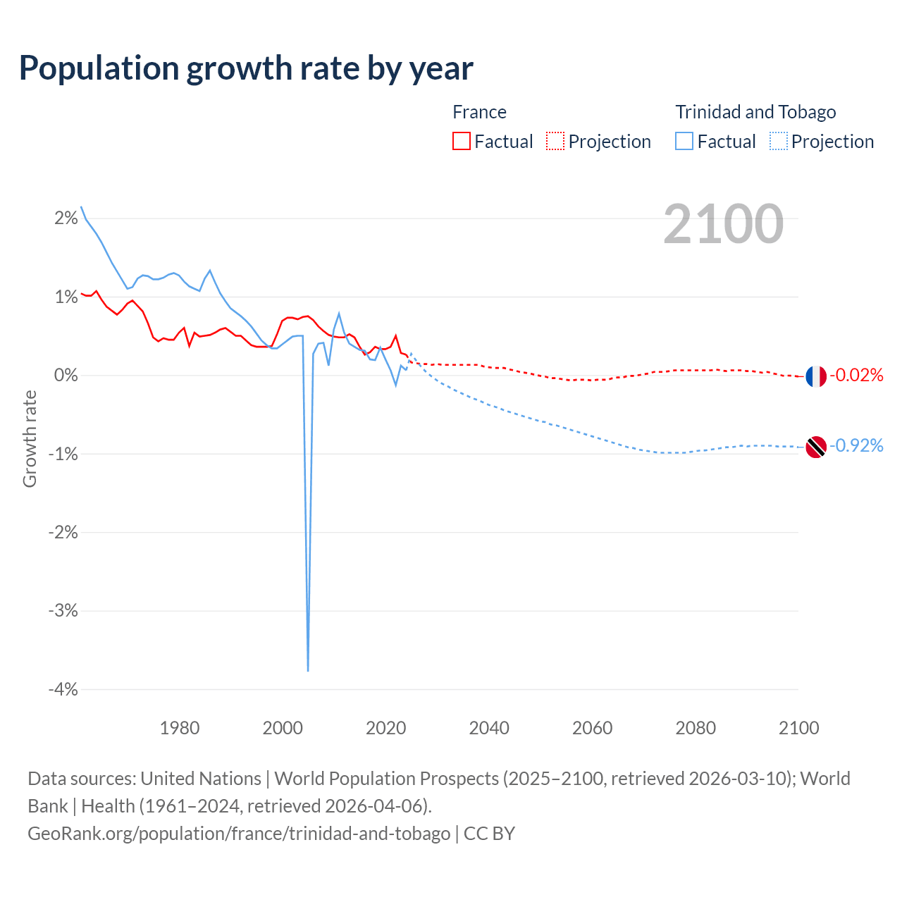 France vs Trinidad and Tobago: population by year and forecast