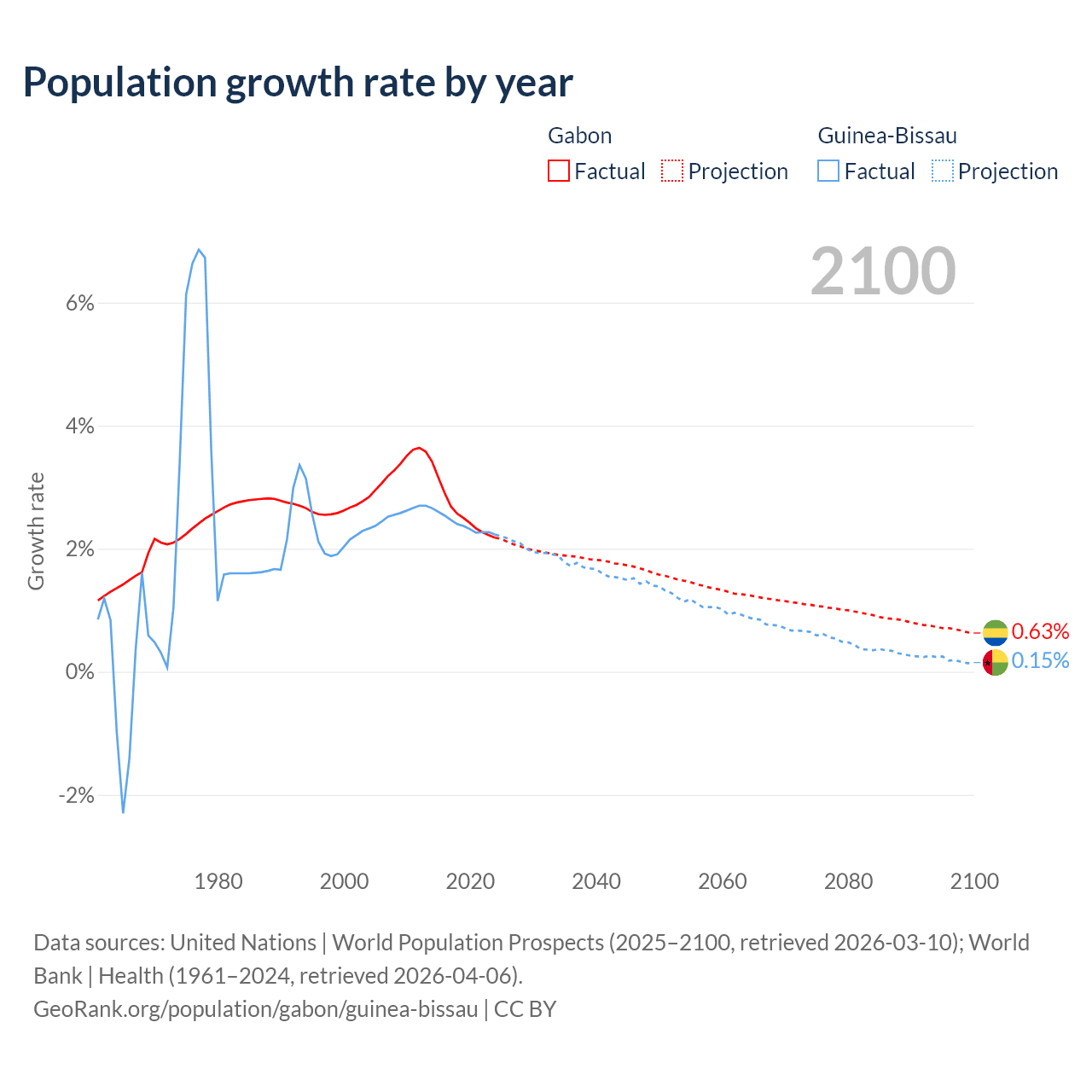 Data sources: World Bank | Health (1960–2024, retrieved 2026-04-06); United Nations | World Population Prospects (1960–2026, retrieved 2026-03-10); U.S. Census Bureau (1960–2025, retrieved 2026-02-08); Central Intelligence Agency (CIA) (2000–2019, retrieved 2026-02-20).