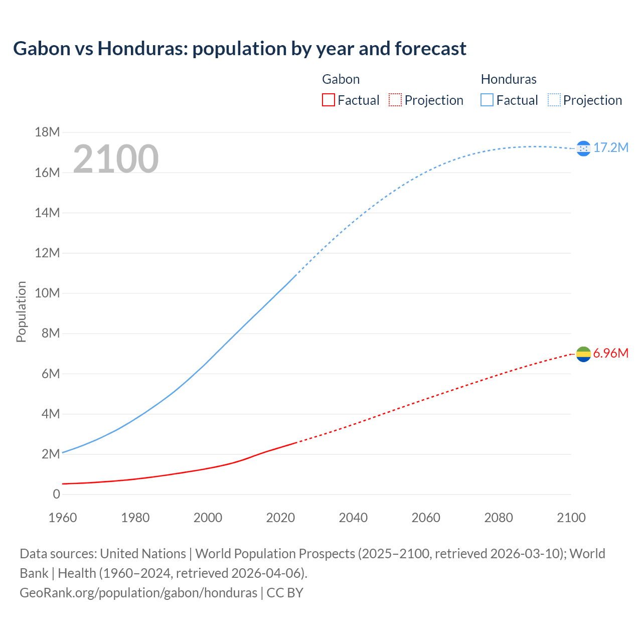 Gabon vs Honduras: population by year and forecast
