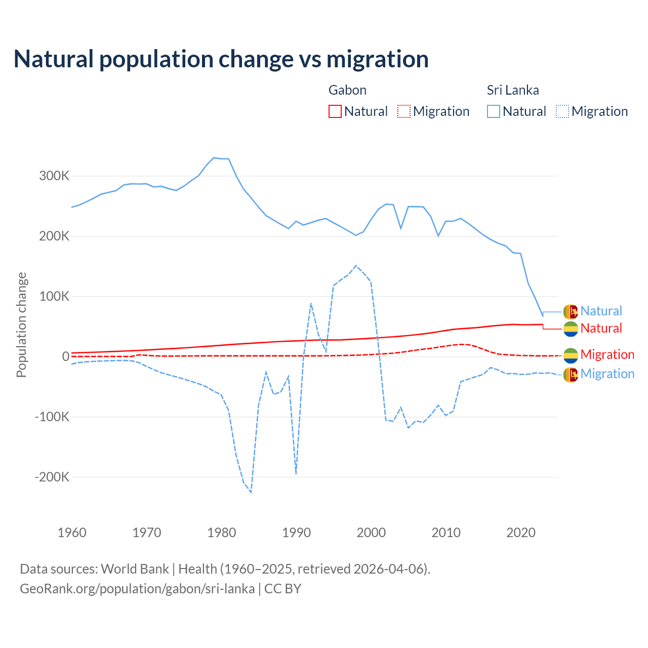 Population differences between Gabon and Sri Lanka