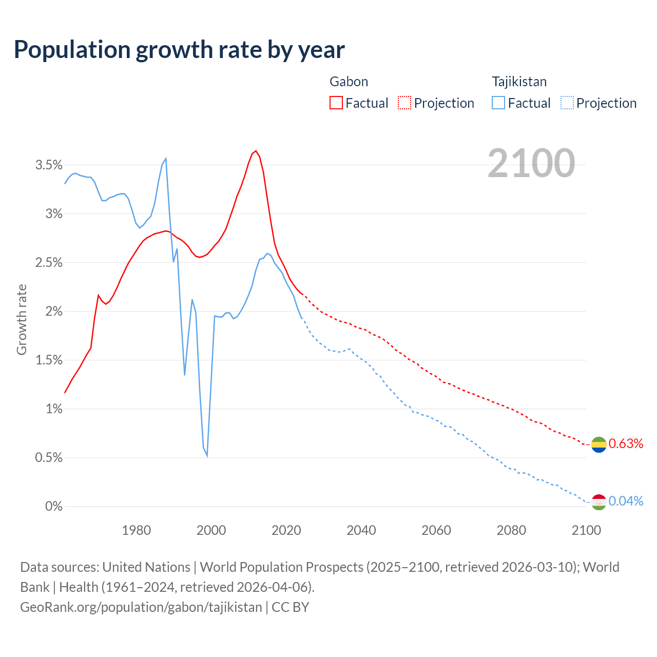 Population differences between Gabon and Tajikistan