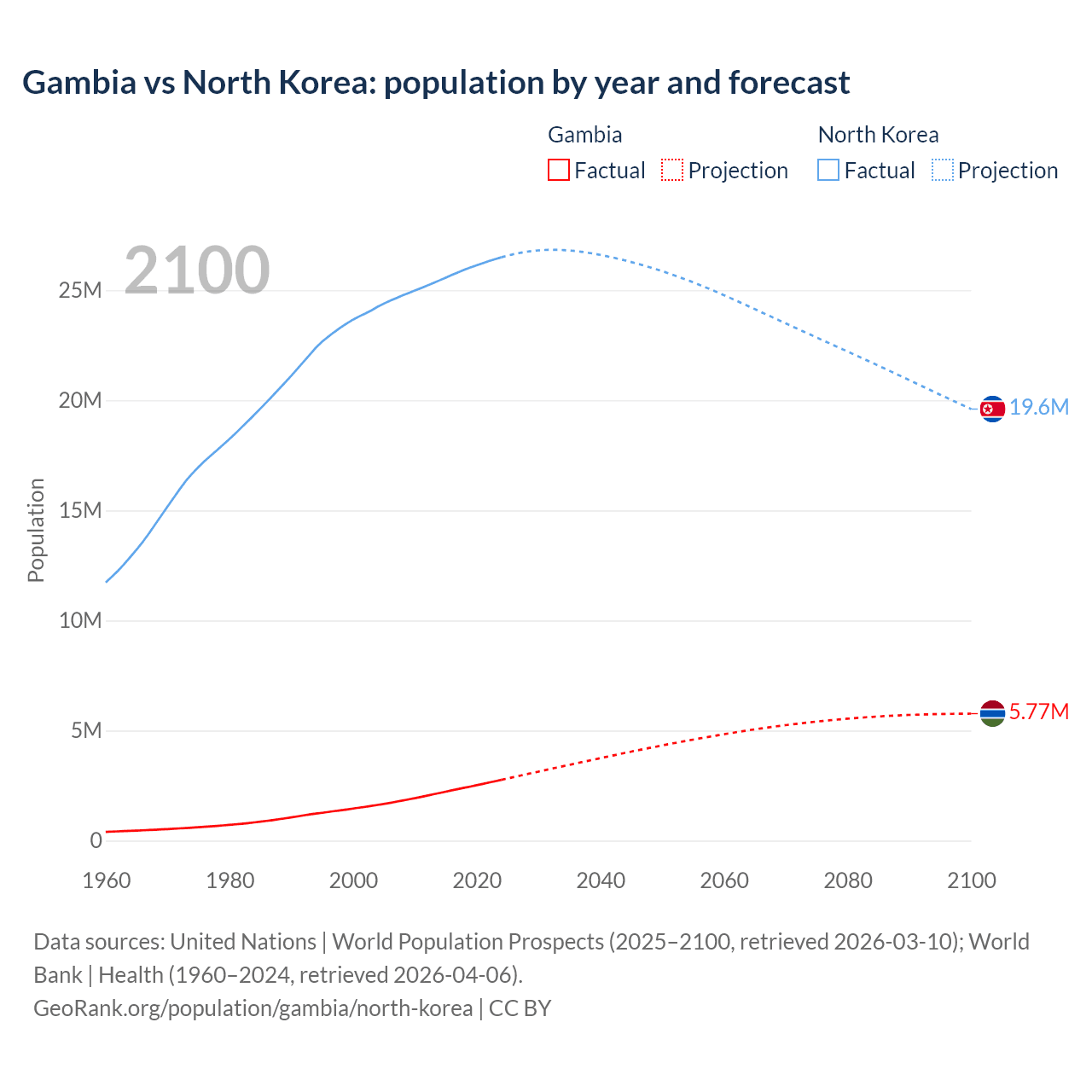 Gambia vs North Korea: population by year and forecast
