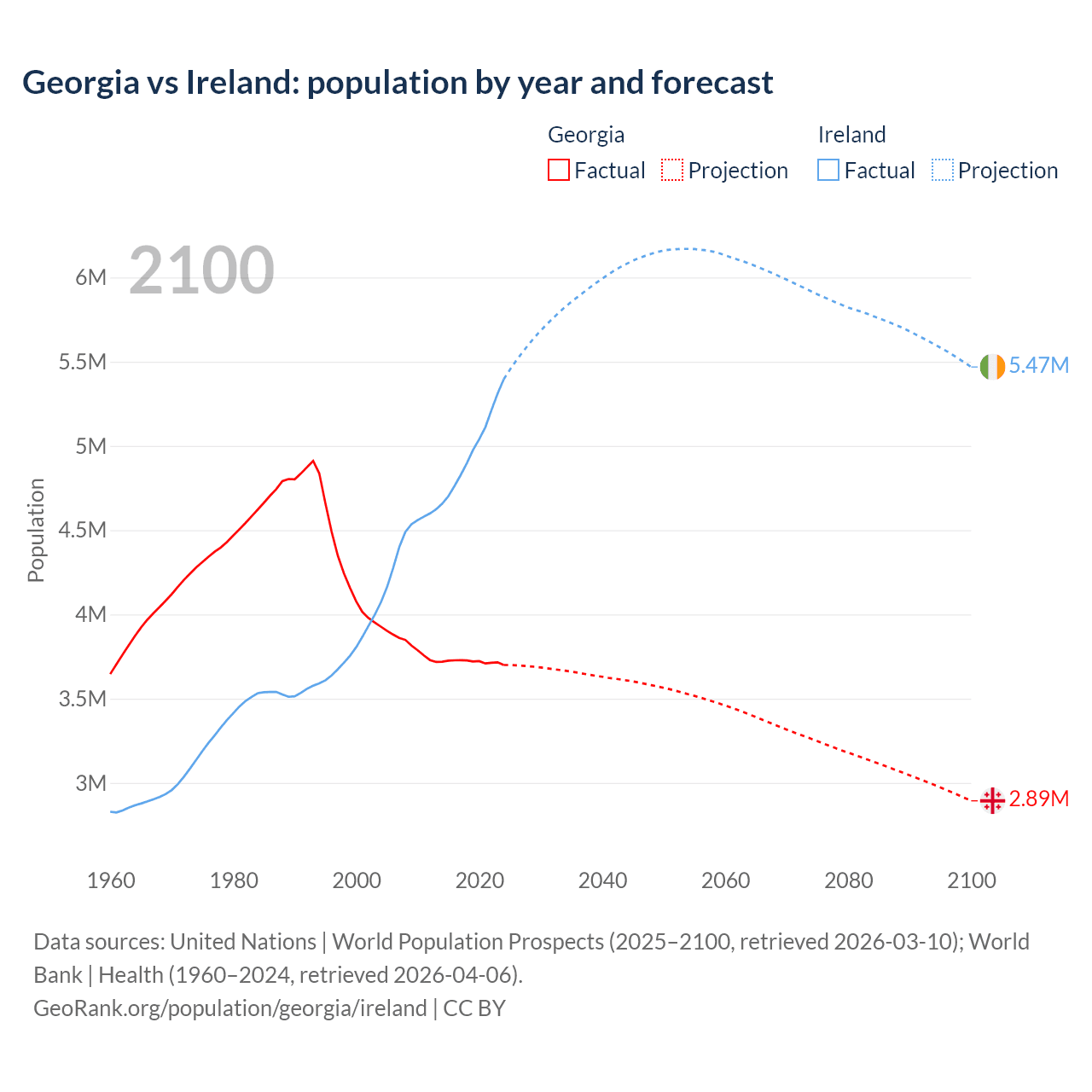Georgia vs Ireland: population by year and forecast
