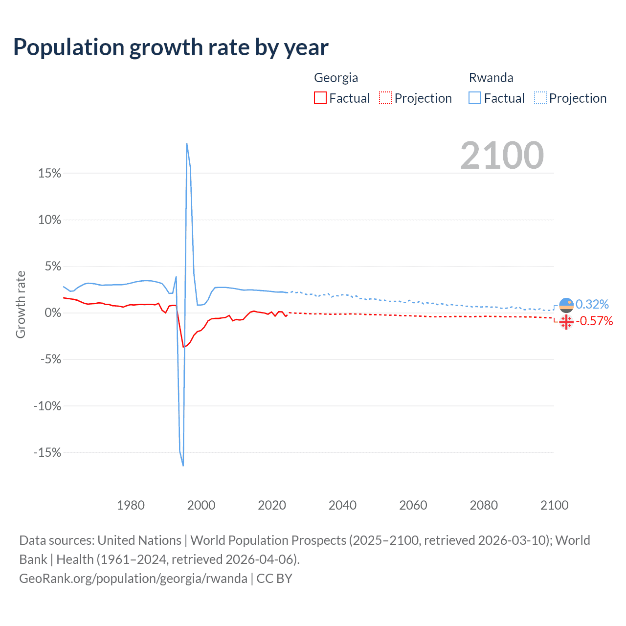 Georgia vs Rwanda: population by year and forecast